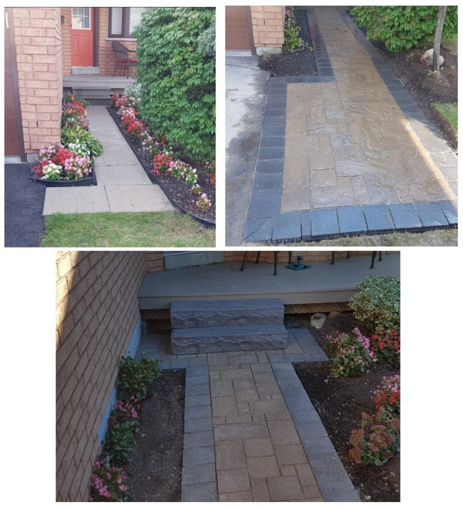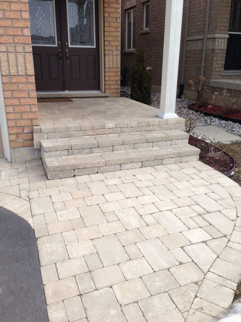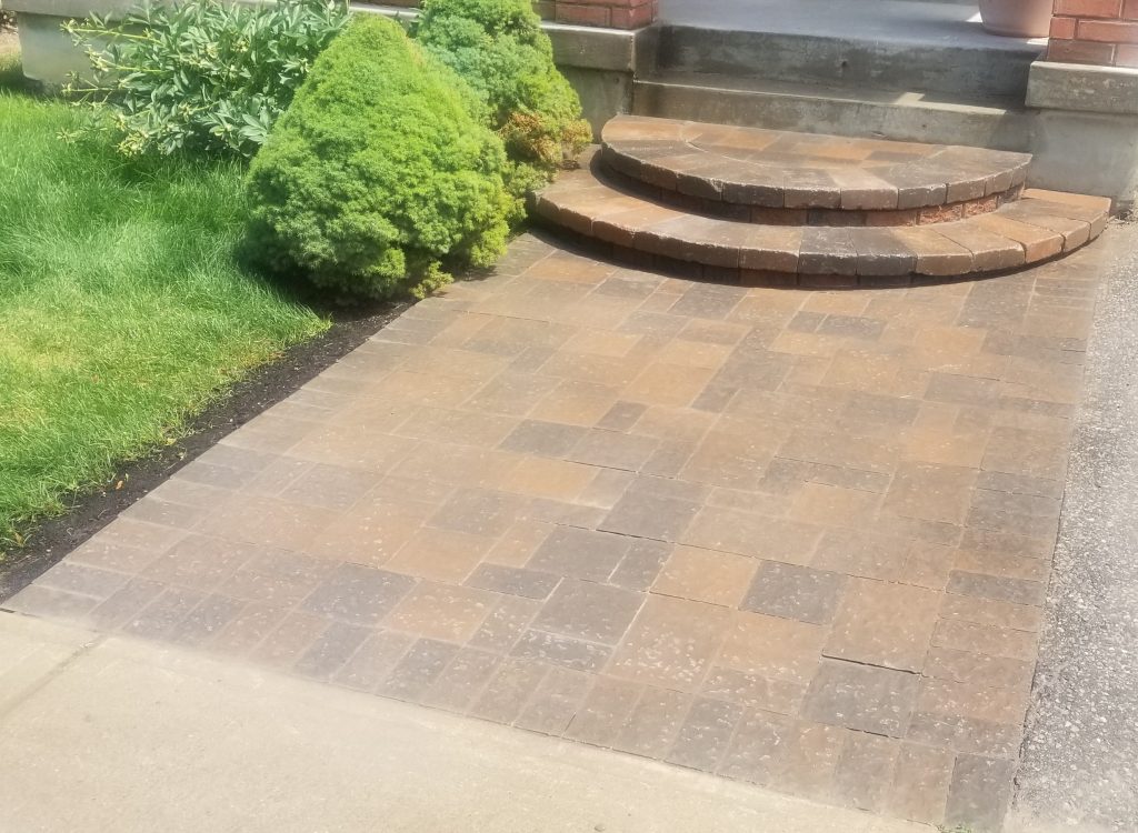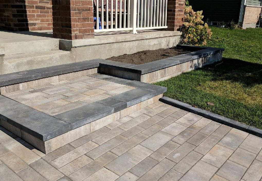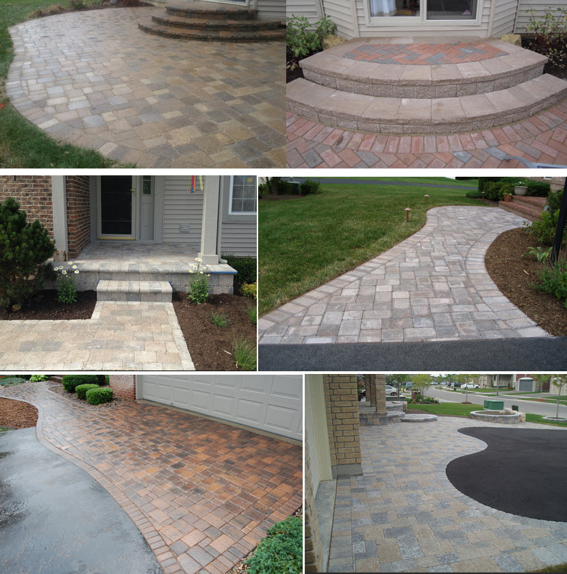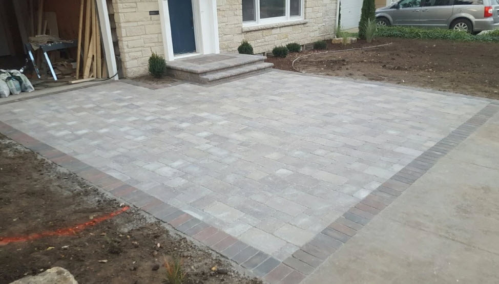 Our company trained paver installation crews provide expert professional installation of interlocking concrete pavers and tumbled pavers in patterns including herringbone pattern, running bond pattern, basket weave pattern, cobblestone, and random patterns with a soldier course paver border. Pavers are installed on a base of compacted gravel and high performance bedding (HPB) which is graded for proper drainage.