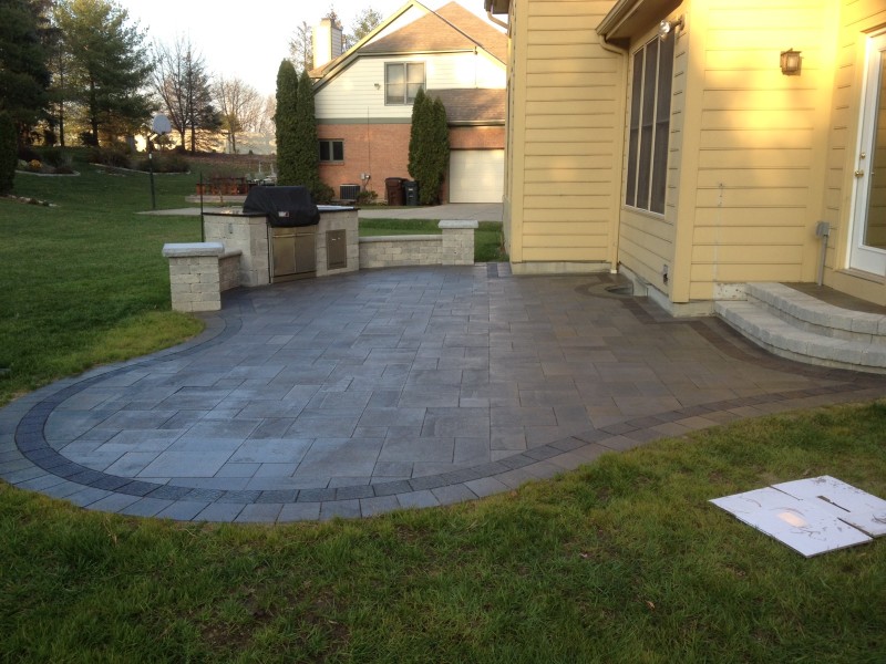 Step down to a paver landing and paver steps from your back door to a curved or angle shaped paver patio. We can even incorporate retaining walls and paver seat walls with columns. Ask one of our talented Durham Signature Design & Build’s designers about outdoor kitchen designs. We can help with your patio furniture layout and landscaping ideas including water features too.